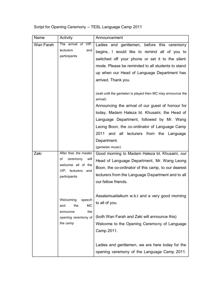 Script For The Opening Ceremony Of English Week