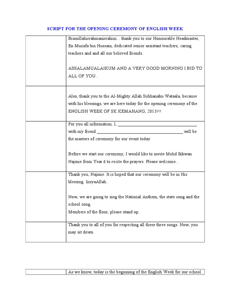 Script For The Opening Ceremony Of English Week