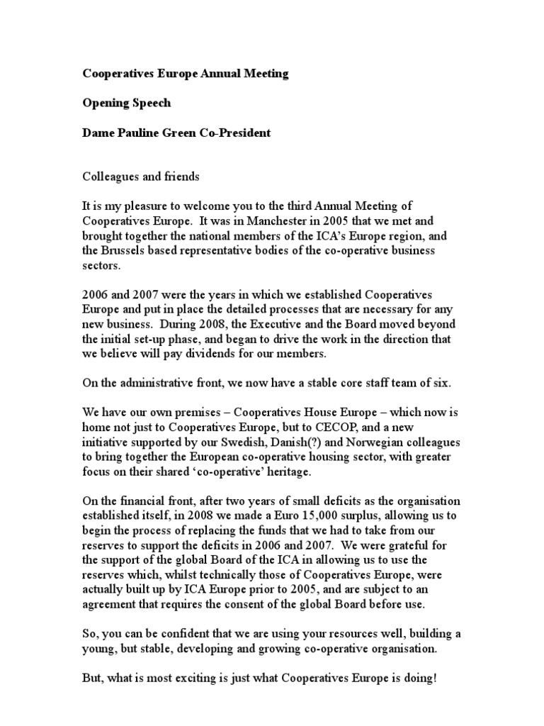 Sofia 2009 General Assembly Opening Speech Cooperative European Union