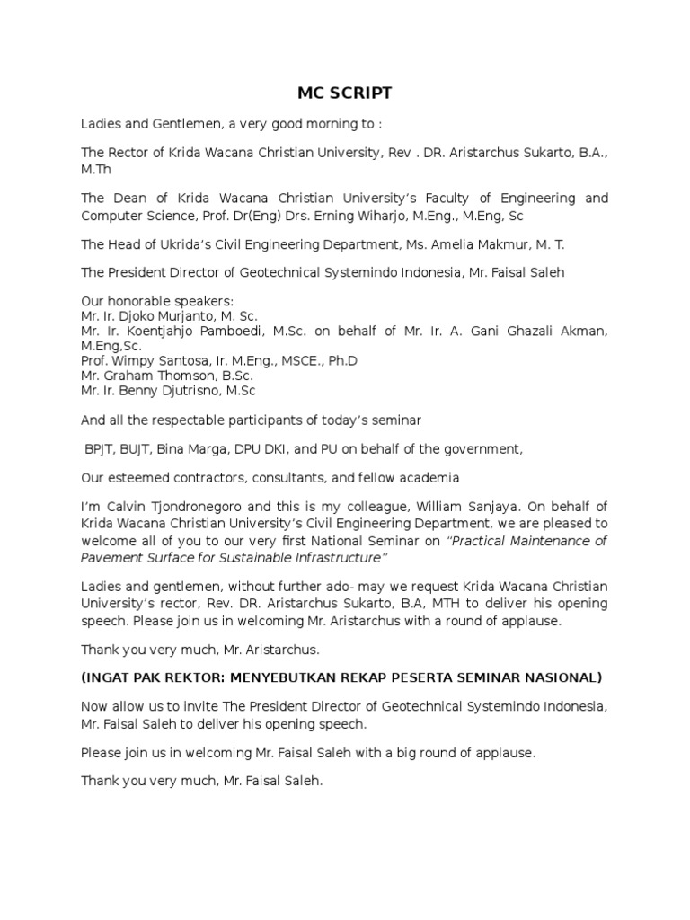 Mc Script Sample For Formal Function Pdf