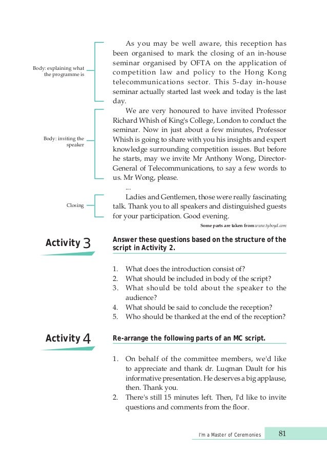 Questions should be kept to a yes or no answer but by asking questions you can keep your audience. Heres how you can identify a host who personifies the word master in master of ceremonies. This role is to ask the proposed MC a few pertinent questions like.