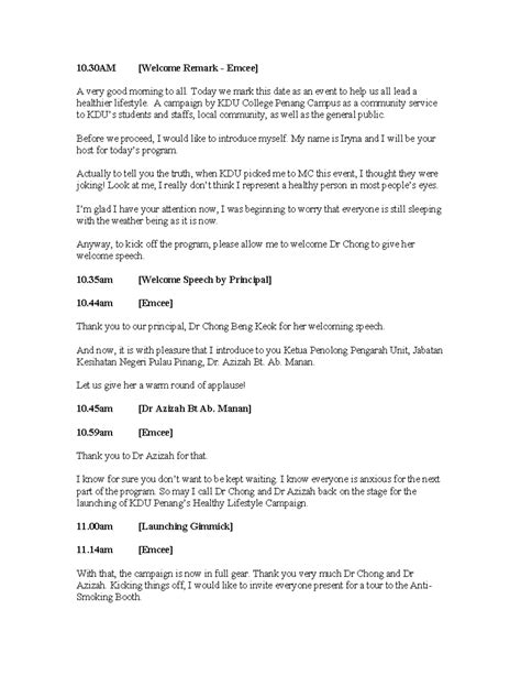 Mc Script For Event Hosting Script For An Event