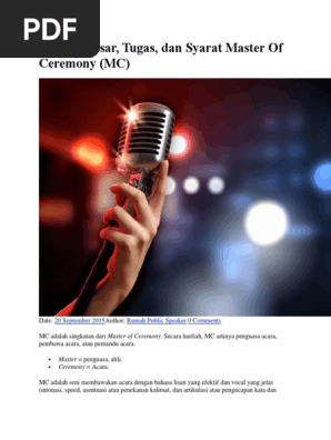 Ada Kepala Daerah Cerai Sama Istri Dalam Waktu 4. DESKRIPSI Untuk menjadi seorang master of ceremony atau pemandu acara hendaknya dipilih dengan mempertimbangkan berbagai aspek. Terbiasa menyebut dan mendengar MC atau Master of Ceremony untuk seorang yang memandu acara dalam Bahasa Inggris lalu apakah kita sudah mengetahui padanan kata yang tepat dalam Bahasa Indonesia.