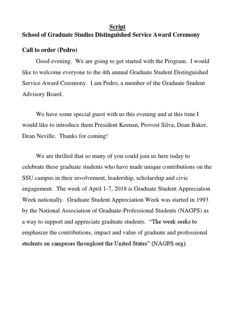 School award ceremonies are just a beginning. Volunteer Awards Recognition ceremony script. And to the C students I say you too can be president of the United States.
