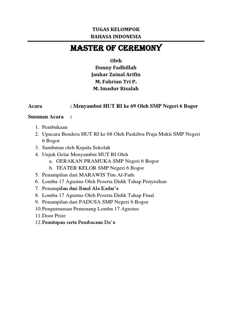 Master Of Ceremony Mc Bahasa Indonesia