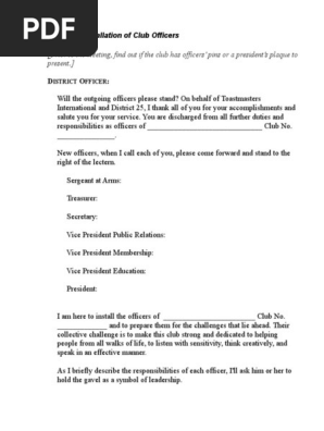 Sample Script For Club Officer Installation Politics Business