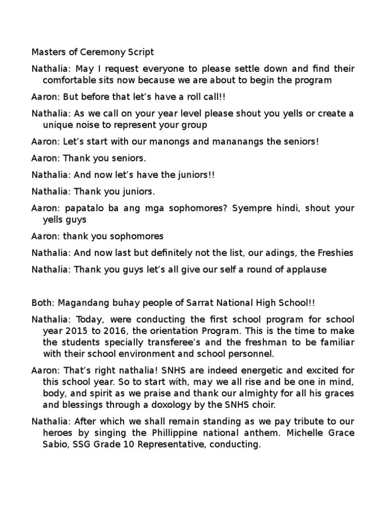 Samaco and to our college dean Dr. Posted by Teacher Cel on March 30 2016. Template Script for Emcees 1.