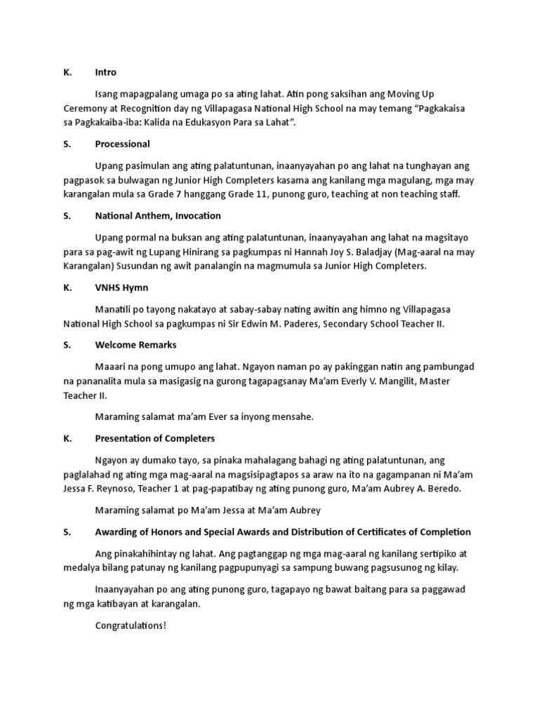 Emcee Script For Recognition Day In Elementary Tagalog The Best Master Of Ceremony Text