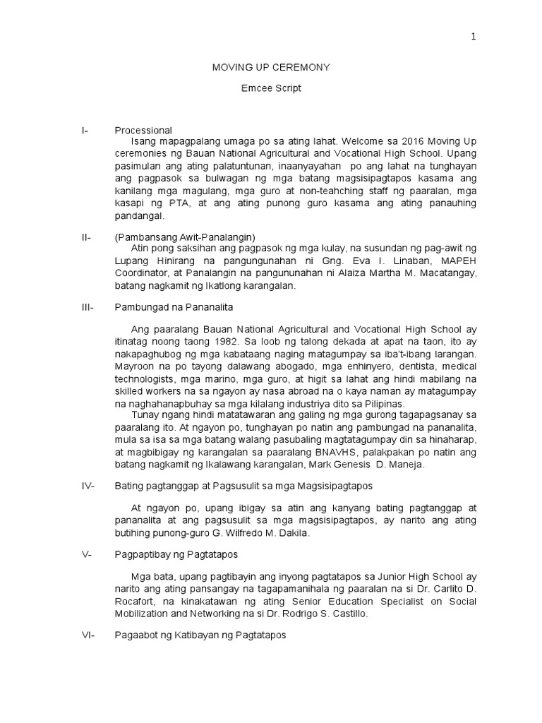 Sample Emcee Script For Moving Up Ceremony Fasrmyweb