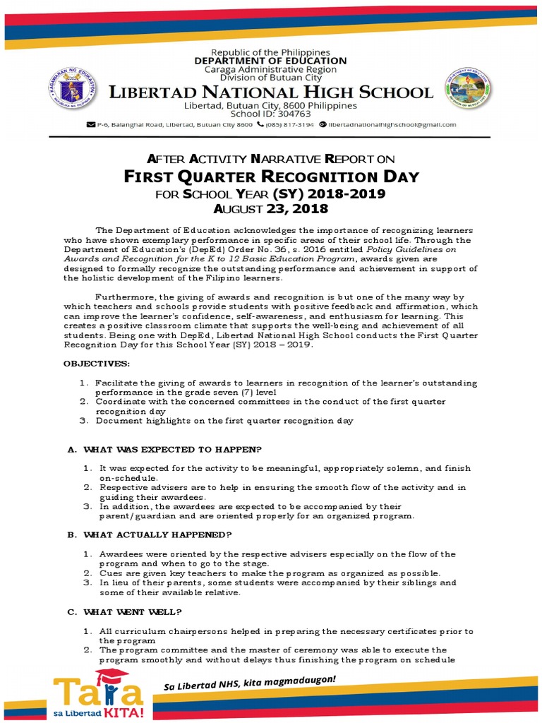 After Activity Narrative Report On Q1 Recognition Day Docx Education Theory Psychotherapy