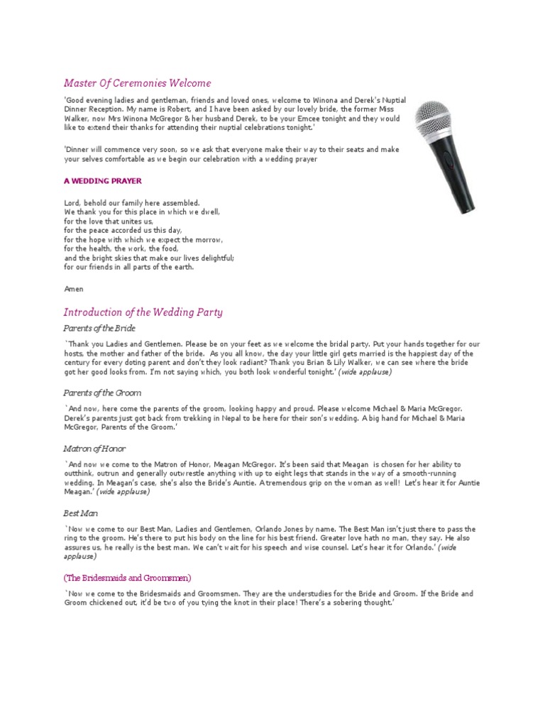 Master Of Ceremony Script Master Of Ceremony Script Master Of Ceremonies Mc Script